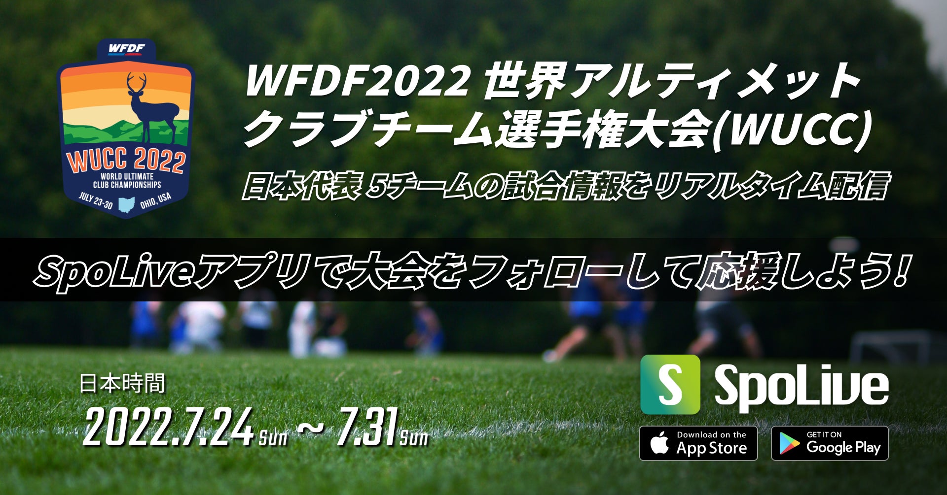 SpoLiveアプリにてWFDF2022世界アルティメットクラブチーム選手権大会(WUCC)日本代表戦をリアルタイム配信!