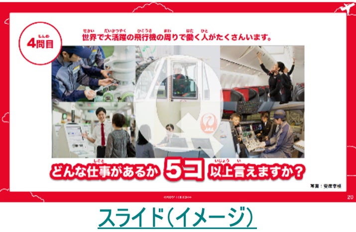 日本航空株式会社(本社:東京都品川区、社長:赤坂 祐二、以下「JAL」)と株式会社80&Company (本社:京都府京都市、代表取締役:堀池 広樹)は、教員向けに無償で教材を提供するプラットフォーム「TOUCH+」(*1)上にて、全国の小学生を対象とした、エデュテイメント型授業(*2)を実現するアクティブラーニング教材「JAL の謎解き×チームビルディング」をリリースしました。