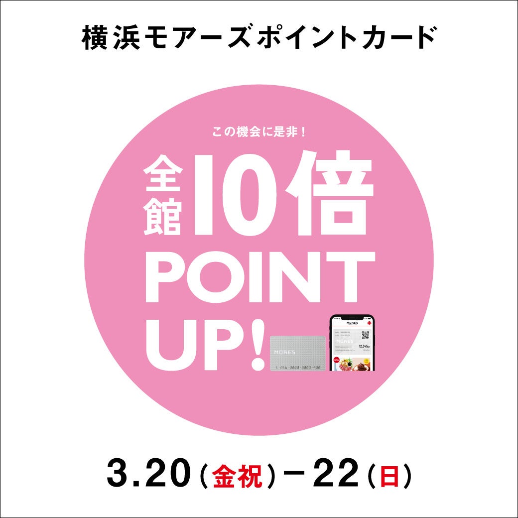 ●横浜モアーズポイントカード&アプリ「全館10倍POINT UP!」[3/20(金・祝)~3/22(日)]