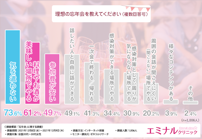 今回、「忘年会」に関する調査を実施した、エミナルクリニック(https://eminal-clinic.jp/)は、