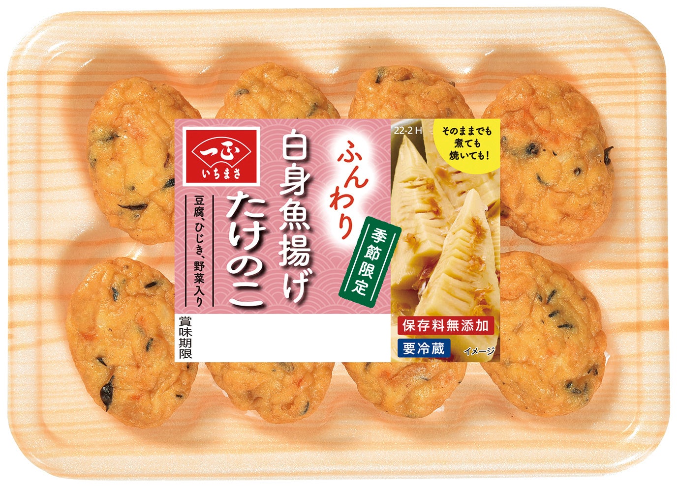 いちまさの人気商品「白身魚揚げ」に春の味覚たけのこ入りが登場!