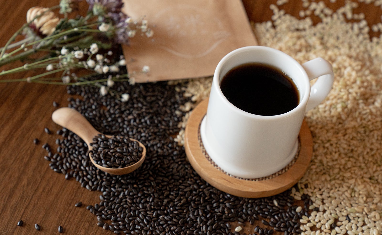 山形県庄内町のアトリエで、「玄米デカフェマイスター」 の手によって一つひとつ丁寧にじっくり焙煎したノンカフェインのお米(玄米)の飲み物です。