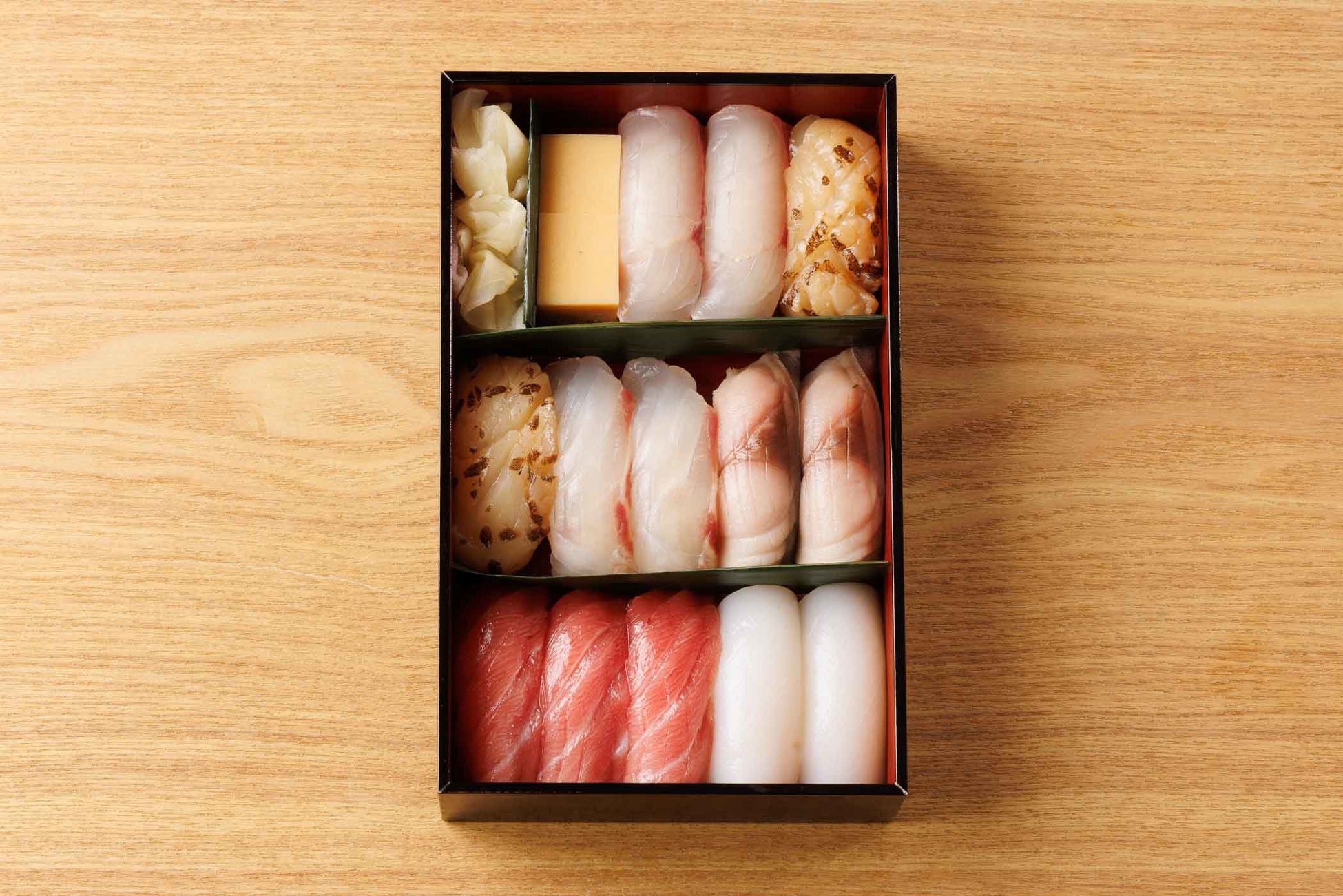 生本鮪入り6種13貫の握り折り詰です。