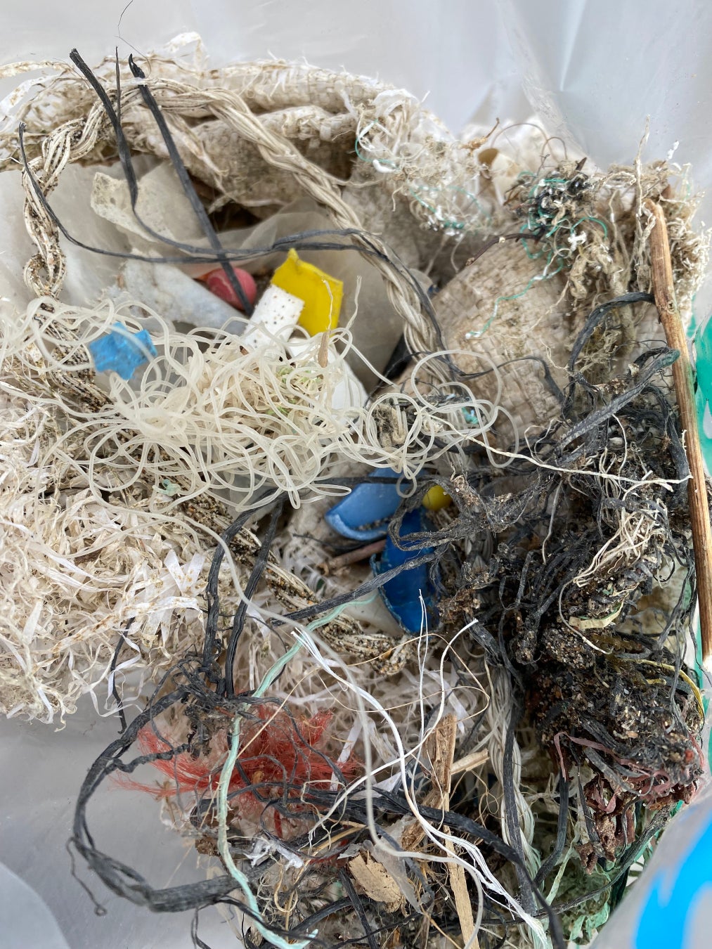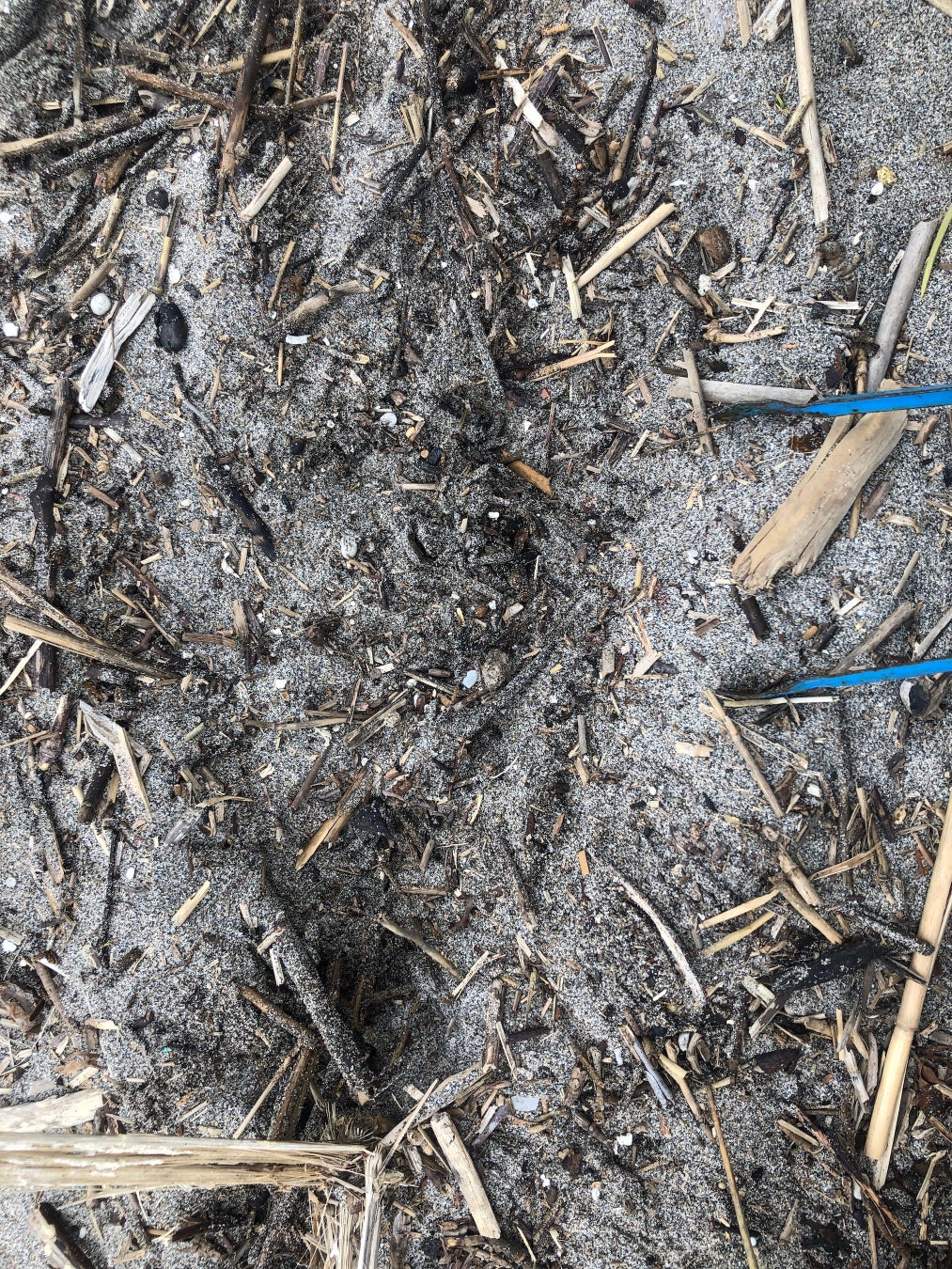 今回のビーチクリーンでは、地元の方が行っている日頃の活動の成果もあり目立った大きなゴミはなく、一見綺麗なビーチに見えました。しかし実際は砂に埋もれたタバコ、マイクロプラスチックが多く存在し、途中から潮干狩りのような形で土の表面を掘り起こして清掃いたしました。他にも、岩に挟まったごみ、土が入って埋もれていたプラスチックバックを見つけました。