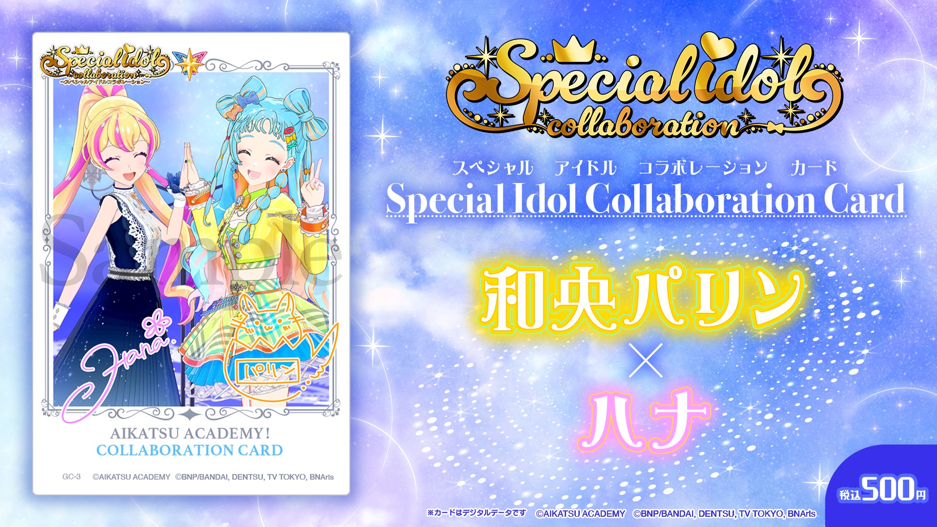 また、「アイカツアカデミー!マイページ」内デジタルカードショップにて、このコラボレーションを記念した「アイカツアカデミー!カード」(1枚税込500円)の発売を、2025年1月11日(土)20:00より予定しております。レジェンドアイドルとの歌唱に挑んだ「和央パリン」のカードボイスとあわせてお楽しみください。