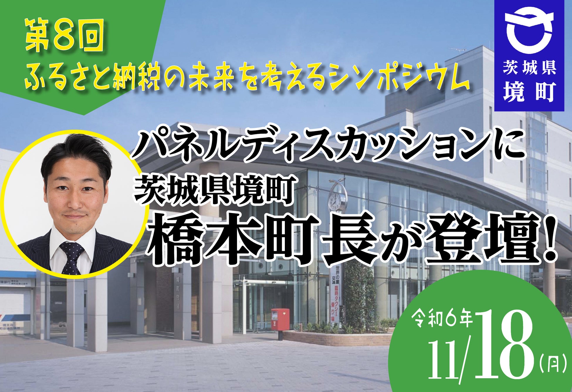 令和6年11月18日に丸の内トラストタワーで開催される「第8回ふるさと納税の未来を考えるシンポジウム」のパネルディスカッションにおいて、茨城県境町の橋本正裕町長がパネラーとして登壇いたします