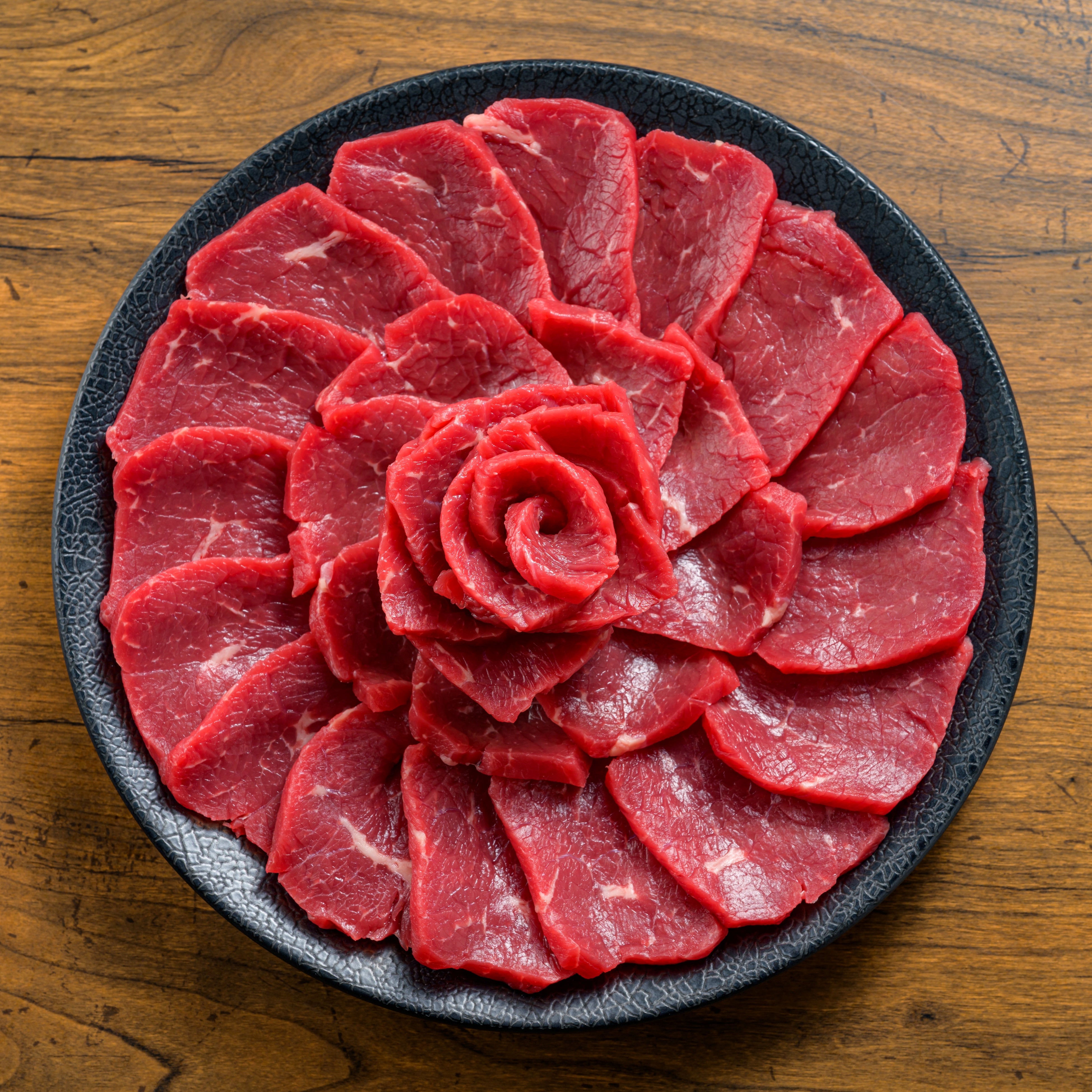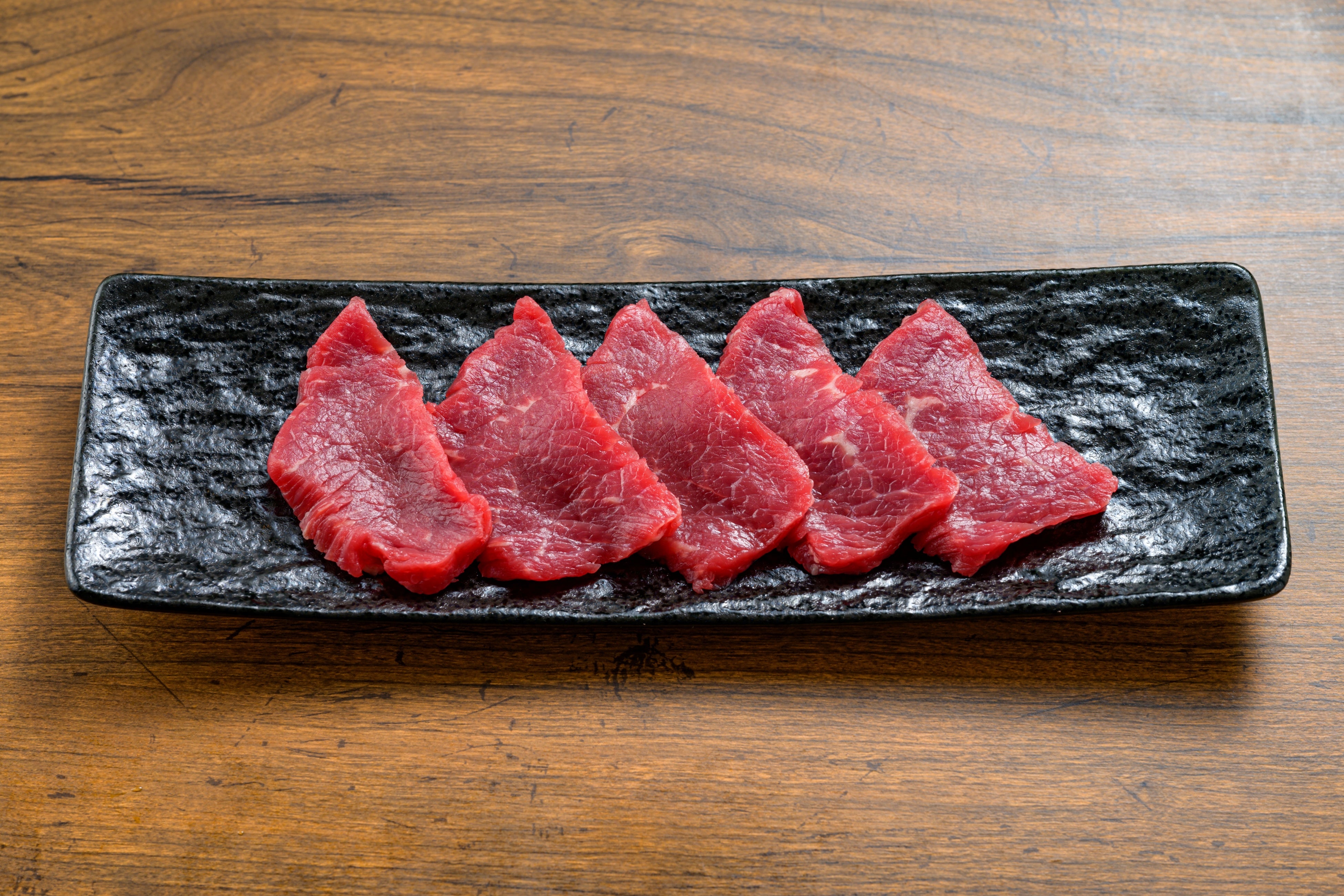「ピースビーフ」は、1枚1枚⼿切りで脂肪を削ぎ落し、徹底的に⾚⾝にこだわった【⾼タンパク・低脂質】の赤身肉。赤身独特のぱさつきがなく、もっちりとした⾷感と美味しさが他店にはないと「ピースビーフ」目当てで来店するリピーターも多い。アスリートや美容意識の高い女性のファンも多く、【⾷べるプロテイン】とも呼ばれています。