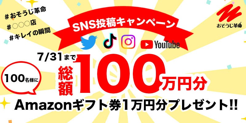・ハッシュタグ:#おそうじ革命 #OOO店(サービスに伺った店舗名)#キレイの瞬間