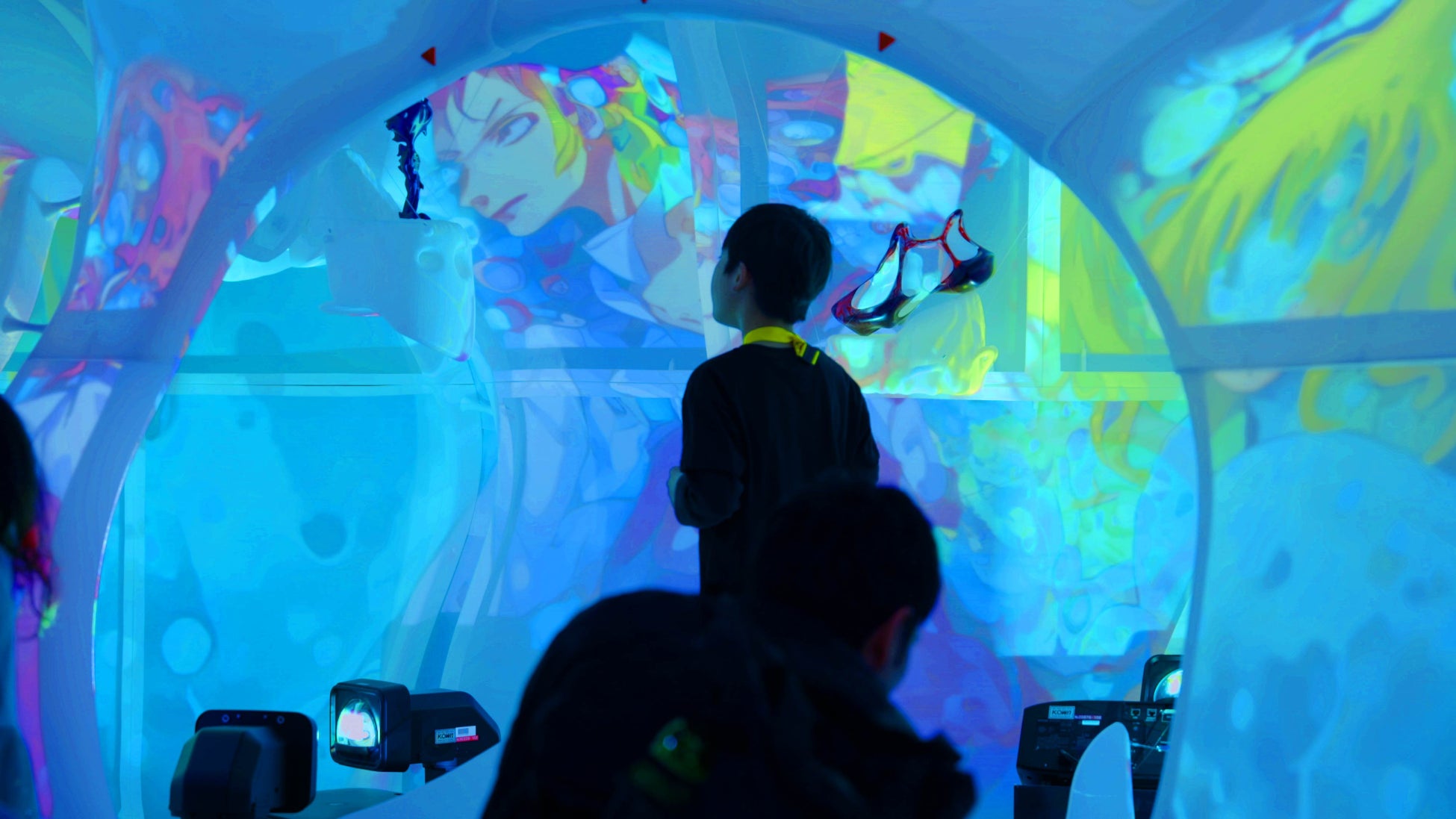 来場者の動きや表情・感情を0.1秒未満リアルタイムに解析し、その場で映像コンテンツを生成することにより、観る者がまるで作品世界に入り込んだかのような没入体験を実現します。