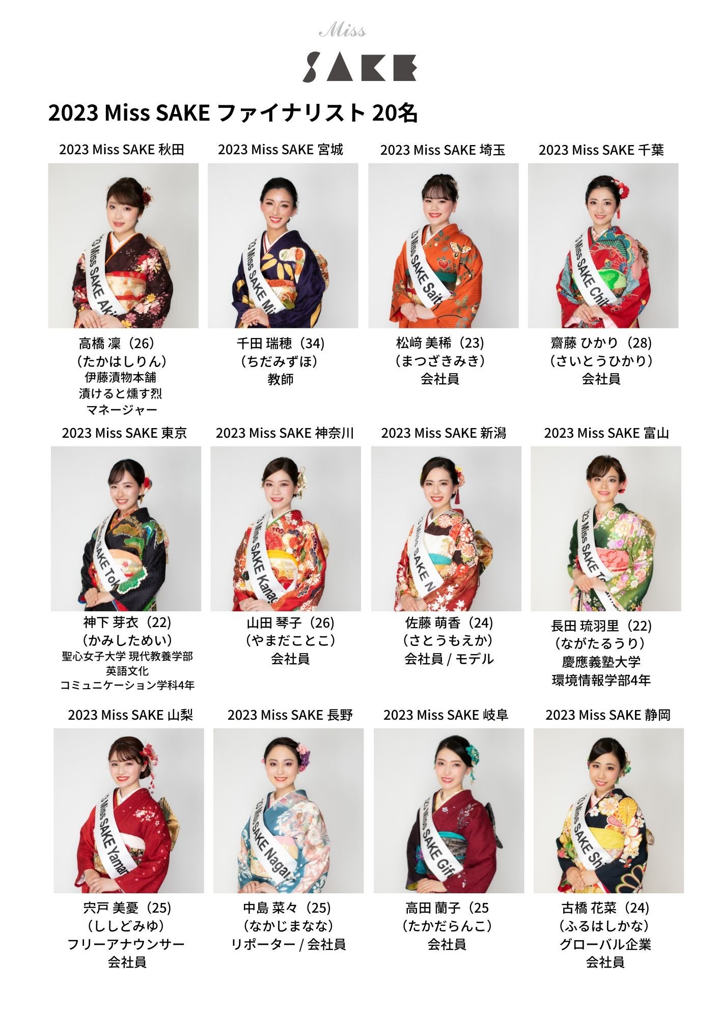 2023 Miss SAKE Japan ファイナリスト20名が発表されました。