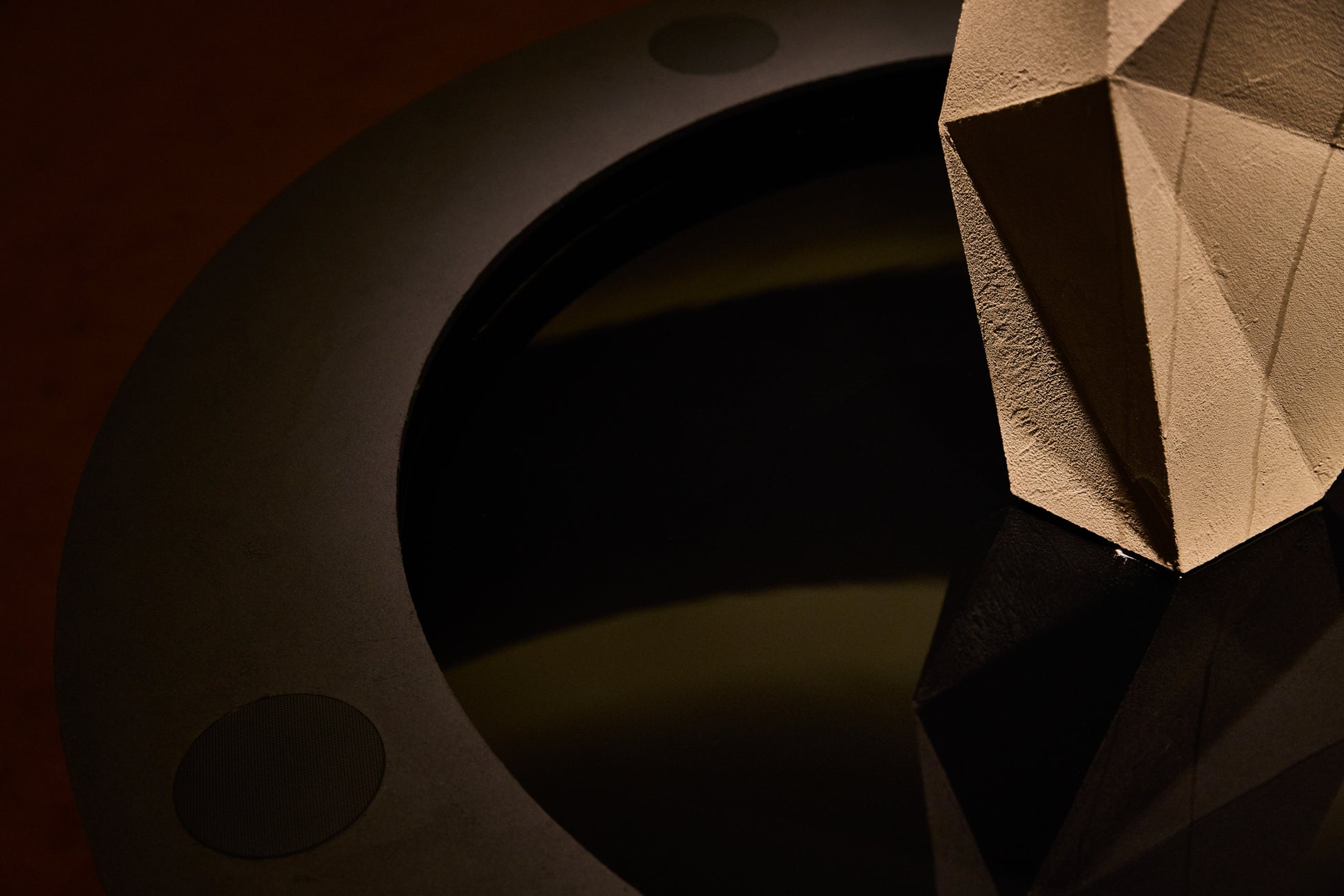 日本庭園の技法である水琴窟の原理に着想を得た機構により、滴り落ちる水音の響きが空間全体を満たします。音の不規則なゆらぎに身体が包み込まれるような体験の提供により、思考が解き放たれ、内なる創造性を引き出す感覚に誘います。(*magma loungeの利用者はどなたでも体験することが可能です)