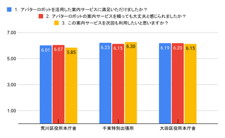 また、現場の行政職員へのアンケートでは、6名中5名が導入効果を肯定的に評価しています。ロボットが「前捌き」を行うことで来庁者の状況を事前に察知でき、職員の精神的負荷の軽減や、本来の専門業務への集中に寄与したことが報告されています。