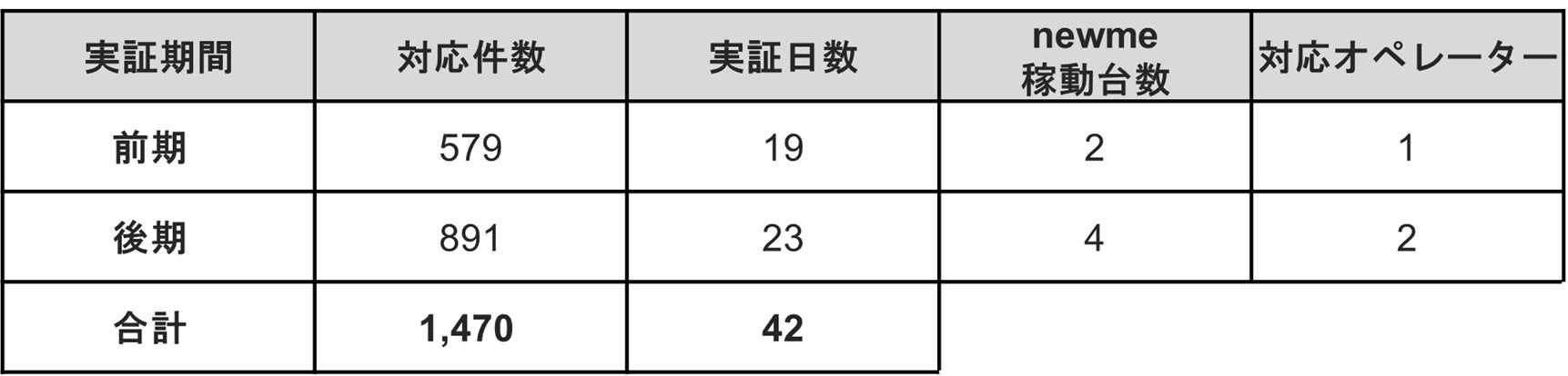 42日間の実証期間中、合計1,470件の対応実績を記録しました。(表1)