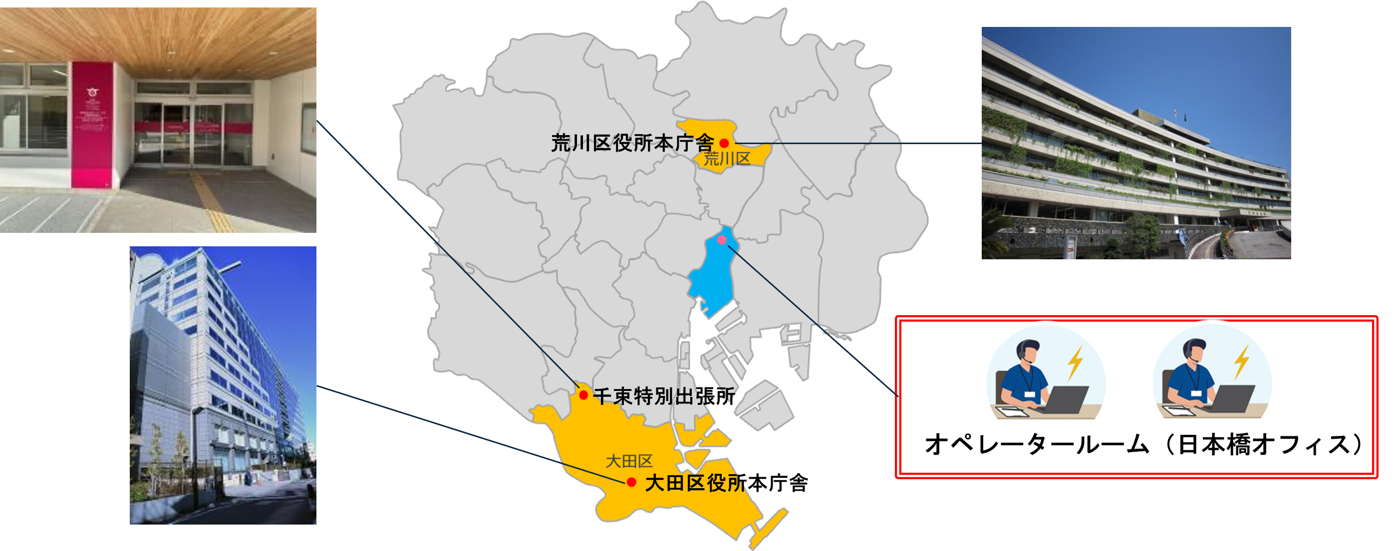 アバター設置場所: 荒川区役所本庁舎と大田区役所本庁舎の2ヶ所
