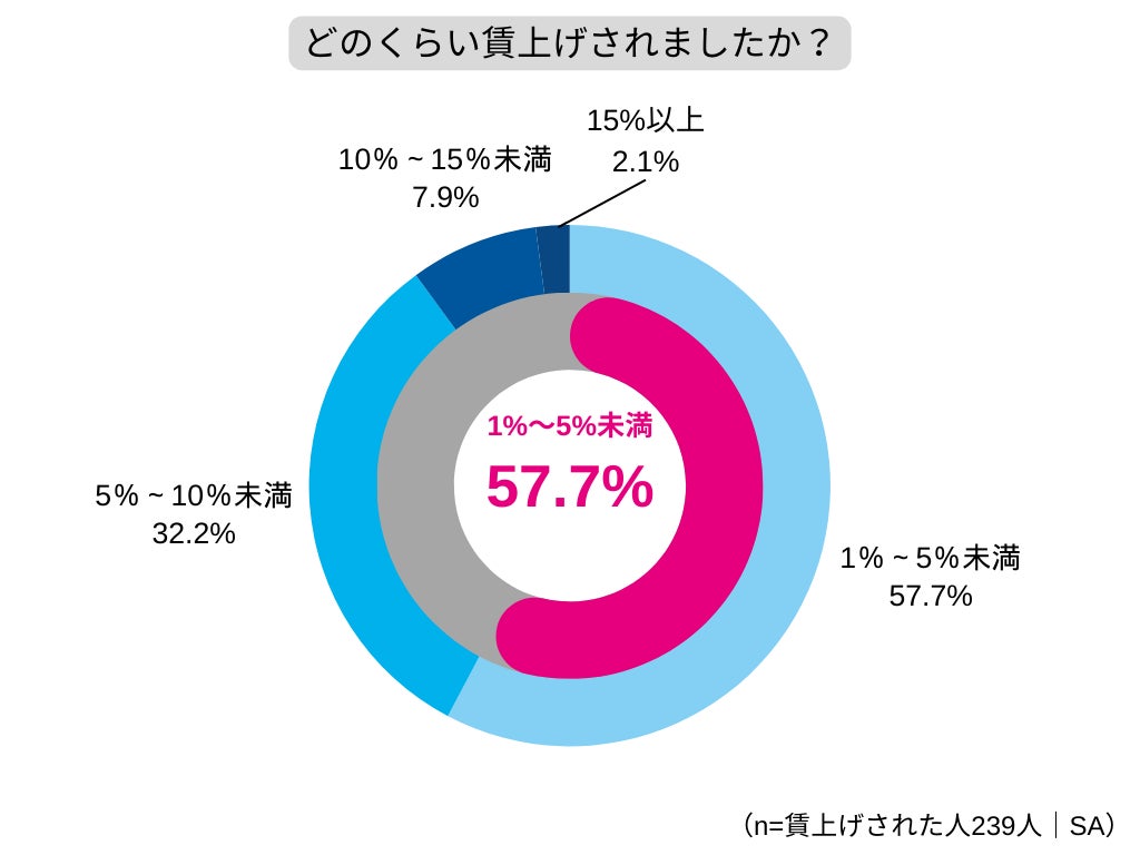 ・半数以上が賃上げされていない、賃上げされている人も57.7%が1%〜5%未満