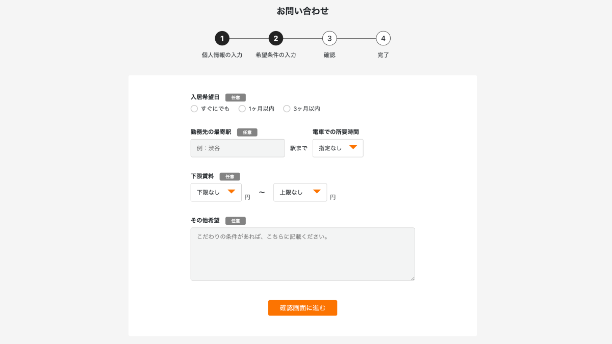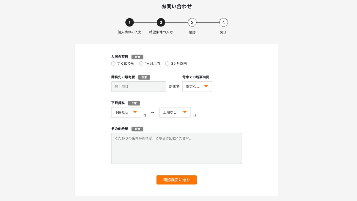RUNTEQ Supportにログイン後、お問い合わせフォームに希望の条件を入力いただくと、三好不動産担当者の方と一対一で「お部屋探しのご相談」を実施いただけます。