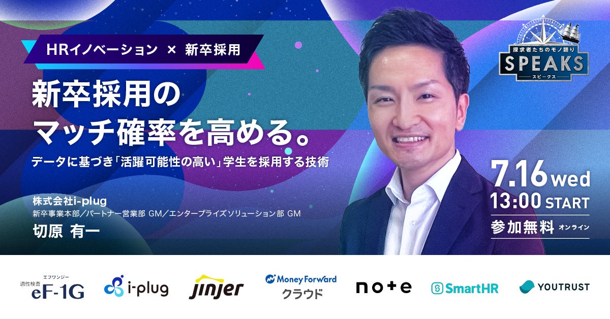 【株式会社i-plug 切原氏に聞く『狙い通りの新卒採用を実現するプロセス』】|SPEAKS HRリーダーズサミット(7/16開催・参加無料)