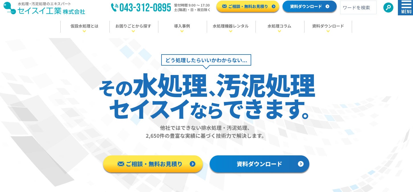 セイスイ工業は、2,650件を超える豊富な実績と技術力を基盤に、排水・汚泥処理の課題解決を強力にサポートします。