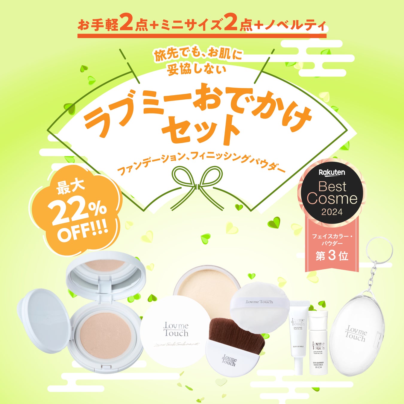 お手軽2点(ファンデーション、UVパウダー)+ミニサイズ2点+ノベルティ