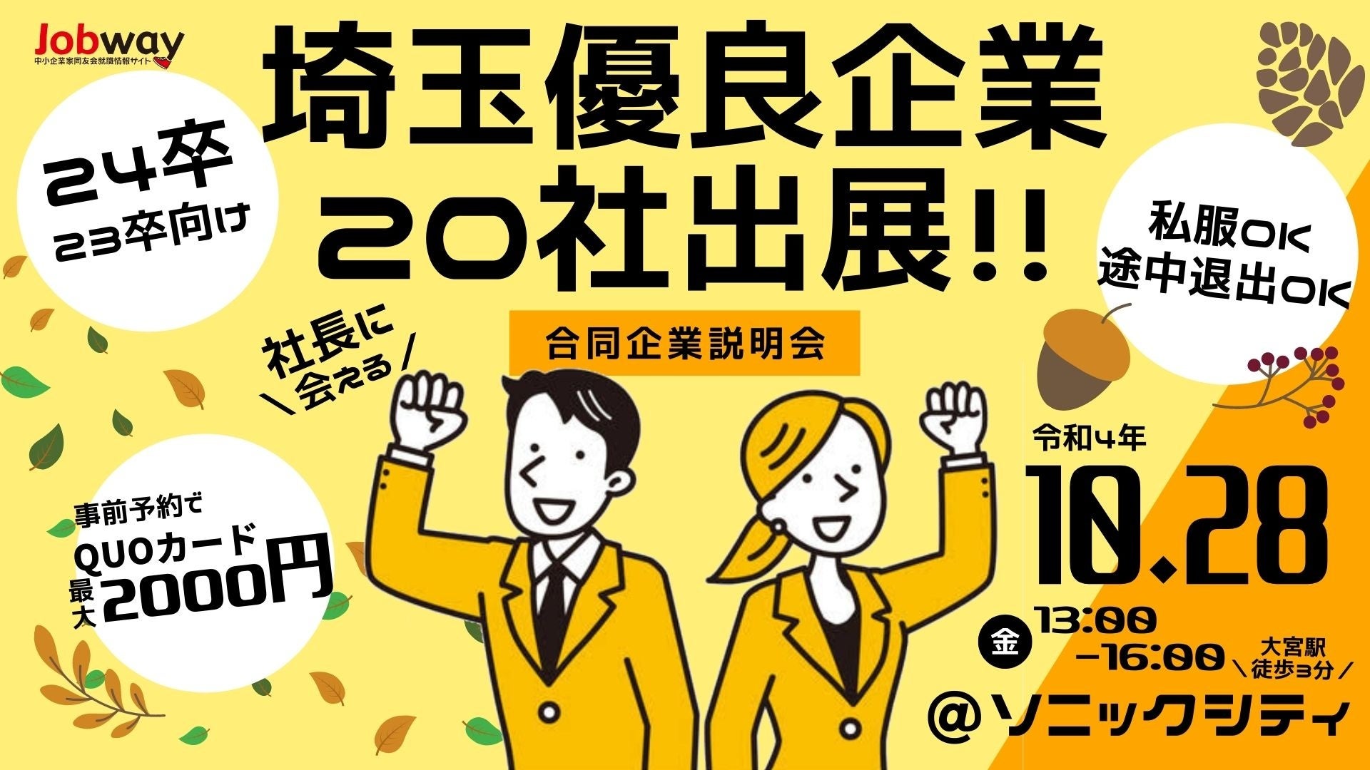 【23卒向け】【24卒向け】10/28(金)同時開催!合同企業説明会埼玉県の優良企業20社と出会おう!