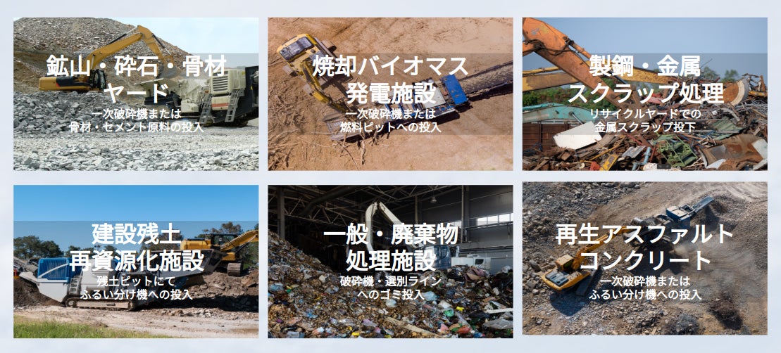 「ヨイショ投入くん」は、プラントやリサイクルヤードにおける投入工程を無人化することにより、安全性と生産性を向上させる装置です。想定される導入先と主な用途は次のとおりです。これらの現場の投入工程を自動化することで作業員の安全性向上、省人化が期待できます。