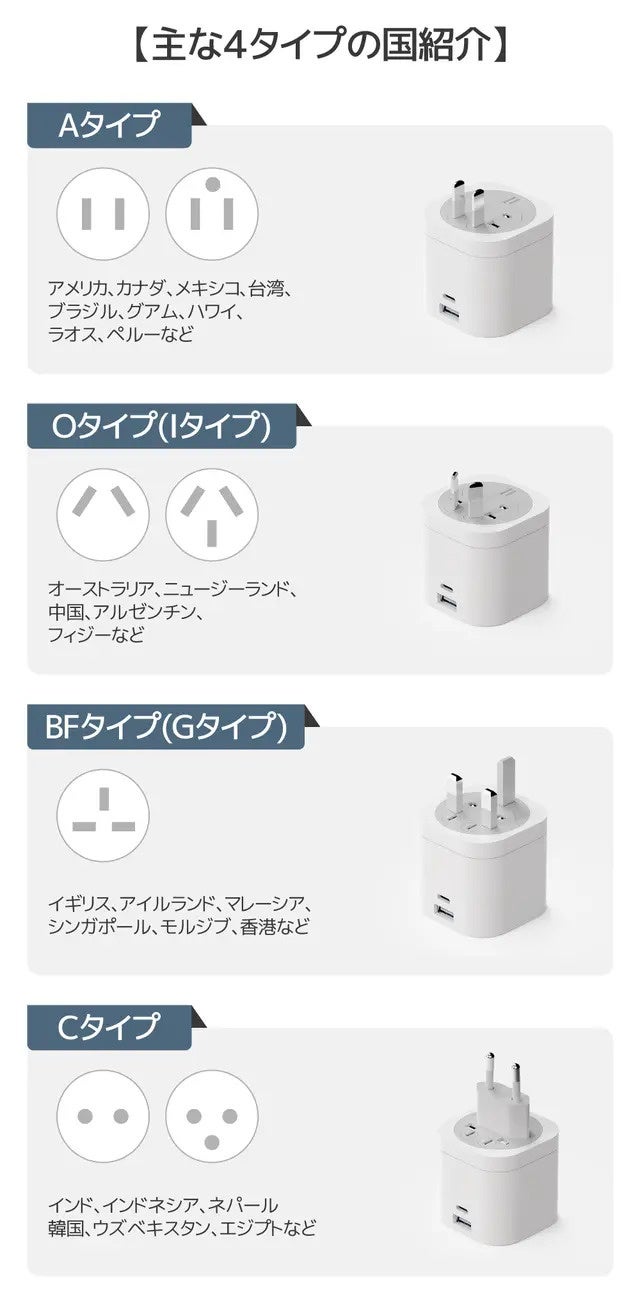 回すだけで4つのプラグに変わる!190か国に対応。見た目と使いやすさを追求した『UC01』電子製品を2台同時に充電可能!USB-AポートとTypeCポート搭載!