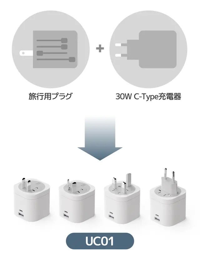 これからは回すだけで190か国に対応するニュースタイルのマルチ充電変換プラグ『UC01』を使用してください。