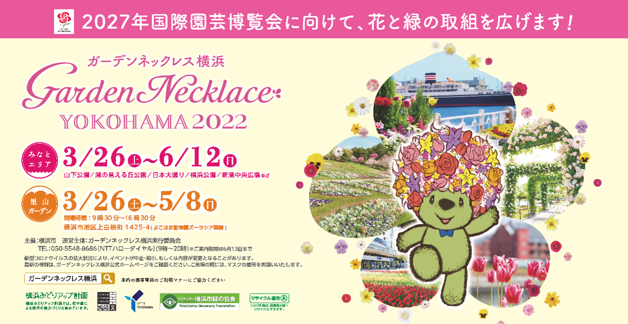 横浜の街を舞台に美しい花と緑をネックレスのようにつなぐ『 ガーデンネックレス 横浜2022 』が、3月26日(土)から 6月12日(日)まで開催されます。