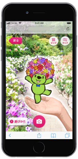 『 ガーデンベアデジタルスタンプラリー 』は、 『 ガーデンネックレス横浜 2022 』のみなとエリア会場となっているフォトスポットをめぐり、指定チェックポイントで『 ガーデンベア 』を集めるイベントです。入手した『 ガーデンベア 』は AR カメラを通して、いつでも手の上に召喚して楽しむことができます。