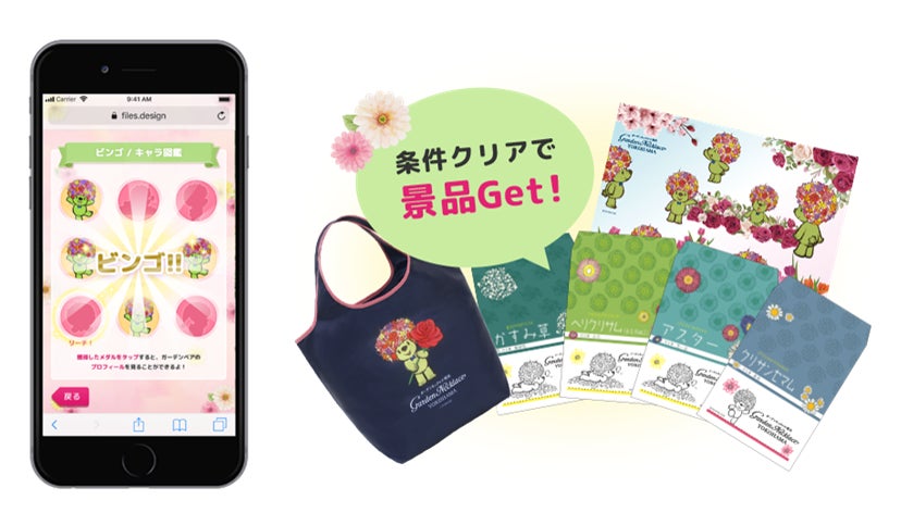 ガーデンベアと一緒に入手できる『 メダル 』を集めるとビンゴが発生し、花や野菜の種、ガーデンベアグッズセットなどがもらえます。更にビンゴが揃うと、キタムラのガーデンネックレスオリジナルエコバックが当たる抽選にも参加できるようになります。さらに、メダルを全て集めコンプリートすると、描きおろしのガーデンベア壁紙をプレゼント します。