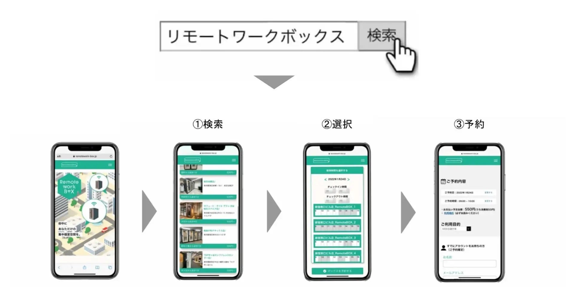 「RemoteworkBOX」は、「街中にあなただけの、集中個室空間を」をコンセプトにした、Wi-Fi・電源が完備された完全個室型作業スペースです。スマホ1つで、全国350台設置されている「RemoteworkBOX」を、15分単位でご利用いただけます。