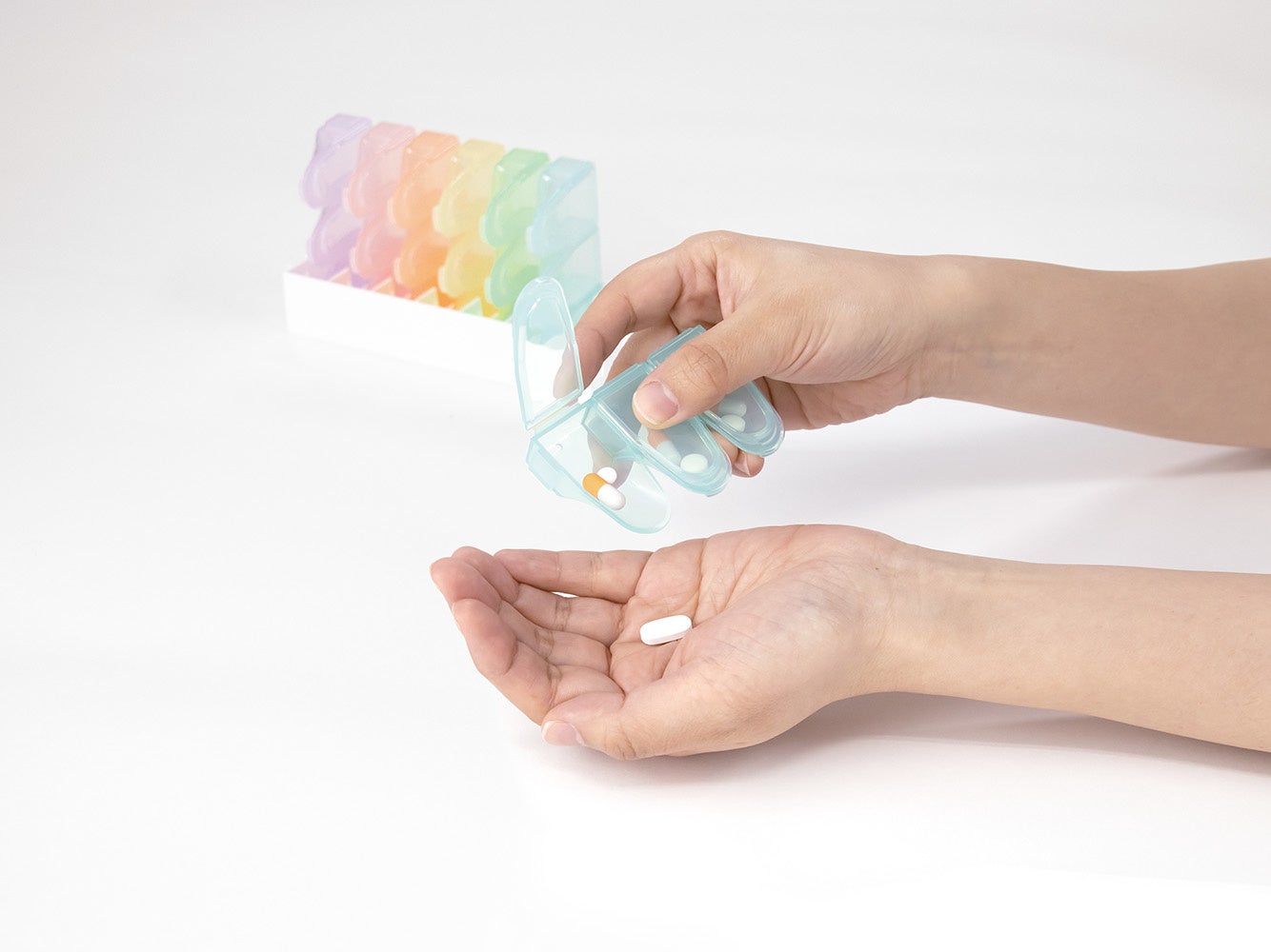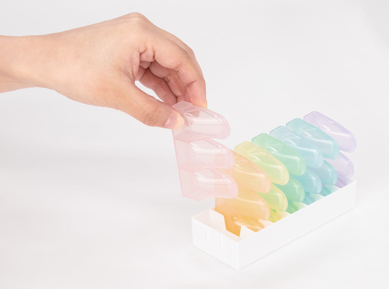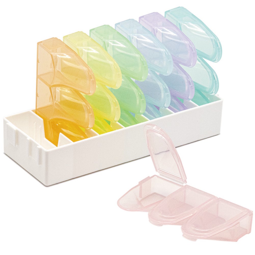 1日分1ケースを取り出して持っていくだけ。一週間分まとめて用意できるから飲み忘れの防止に。
