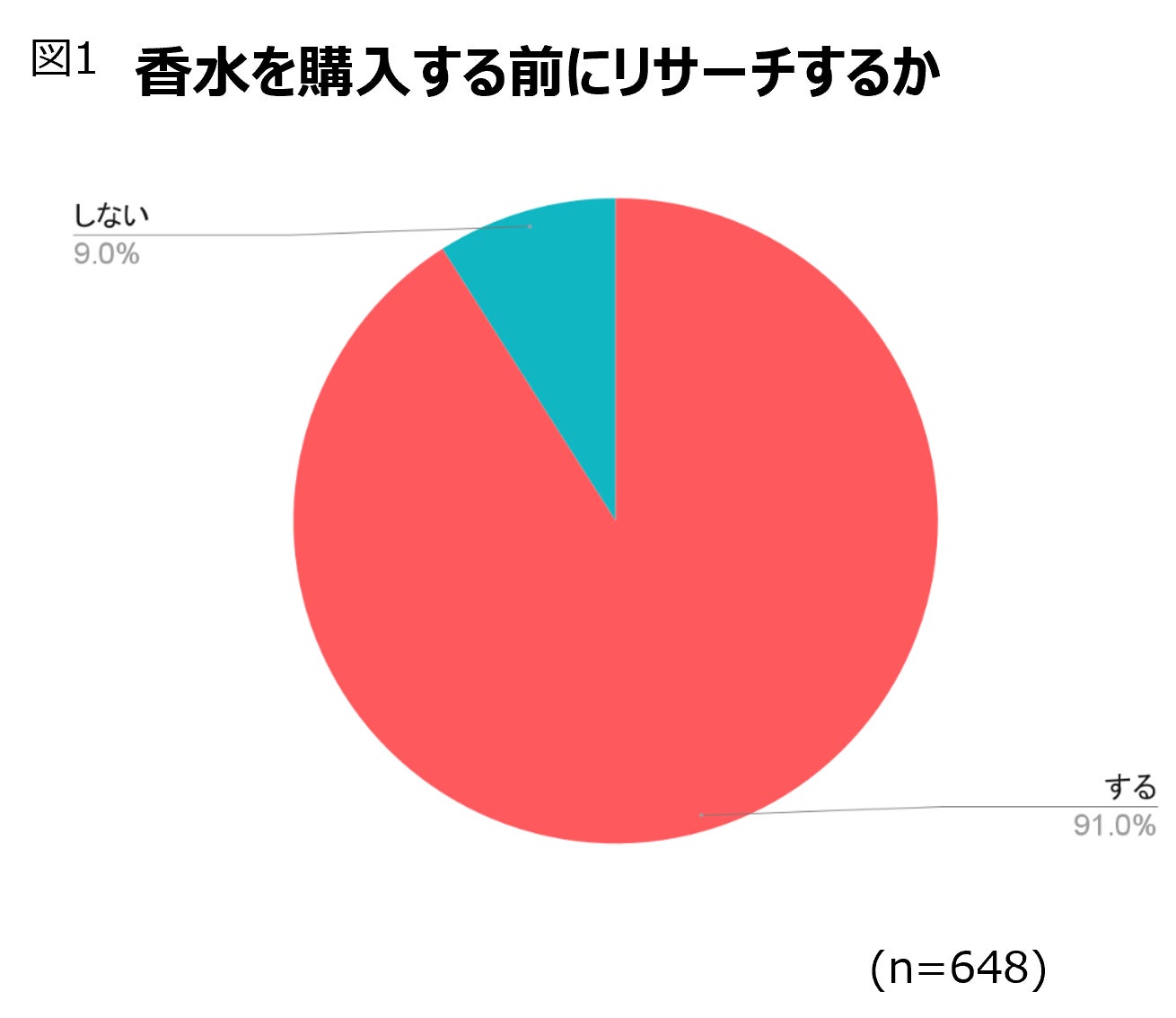 香水を購入する前にリサーチするかを伺ったところ、91%の人がリサーチをすると回答しました(図1)。