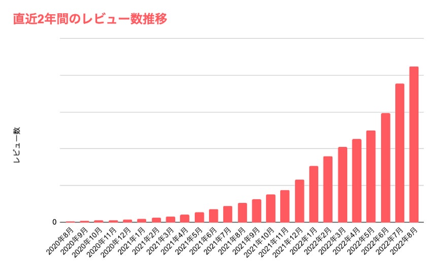 2019年1月にサービス提供を開始して以来、多くの方にレビューを投稿いただき、合計10万件を突破いたしました。特に本年に入ってからの増加の傾向が著しく、現状のペースで増加すれば、前年比10倍になると予想されます。
