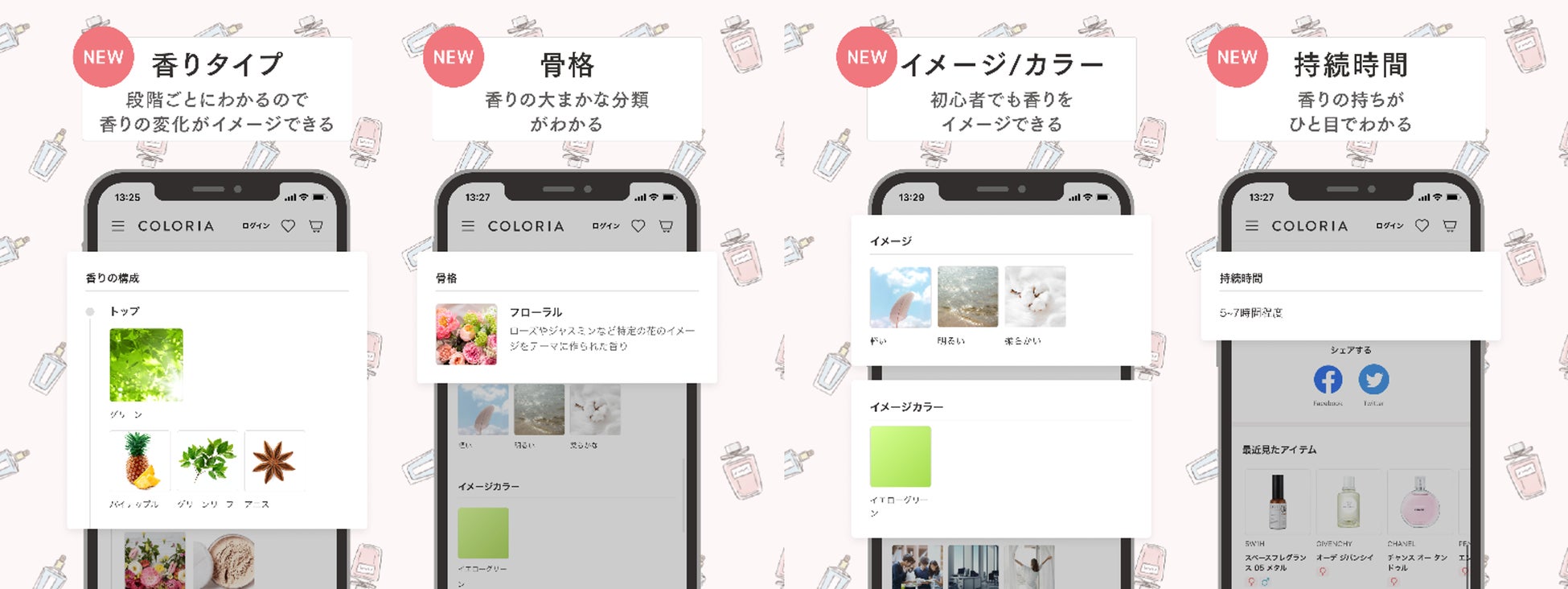 香り選びに悩んだ際は①香り診断 ②充実したサイト検索 ③LINEで香りのプロであるフレグランスアドバイザーにいつでも無料相談が可能。自分に合った香りに出会えるサポートをご用意しています。サービス開始から3年5か月が経過した2022年6月現在、Instagramアカウント(@coloria_magazine)のフォロワー数は約21万人・オウンドメディア「COLORIA MAGAZINE」の月間PVは100万超。また、会員数はコロナ禍のここ2年で約30倍*1と多くの方に支持をいただいております。