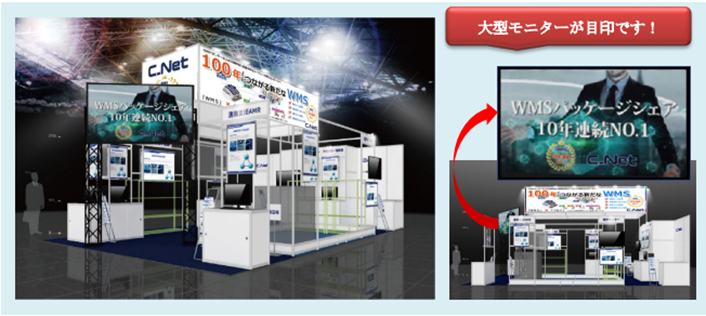 本展示会でシーネットは、今後の物流センター運営に欠かせないソリューションをご紹介し、各ソリューションつなぐメリットを体感頂けるようなブース作りをしました。