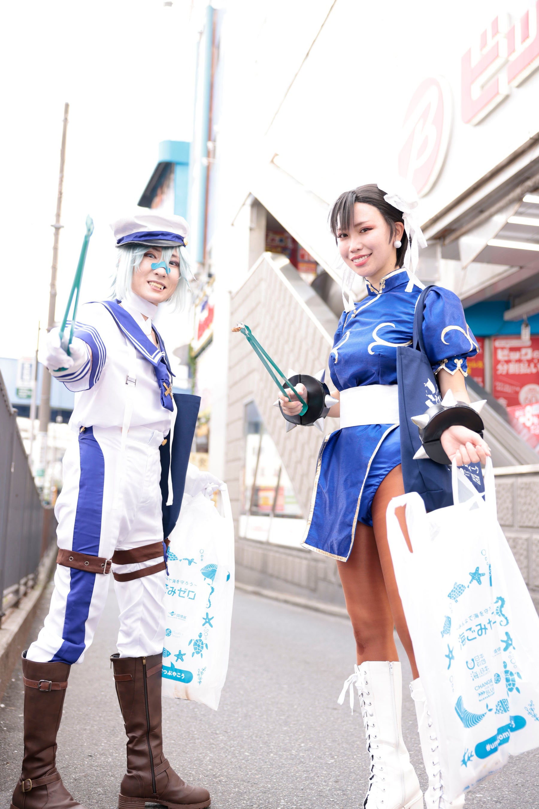 横浜の街中を約400名の企業やコスプレイヤーたちでごみ拾い