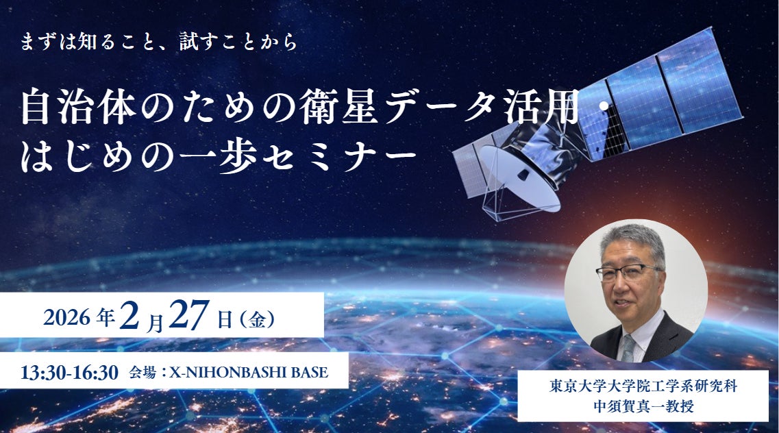 活動の第一弾として、「自治体のための衛星データ活用・はじめの一歩セミナー」を、2026年2月27日に東京・日本橋にて開催いたします。