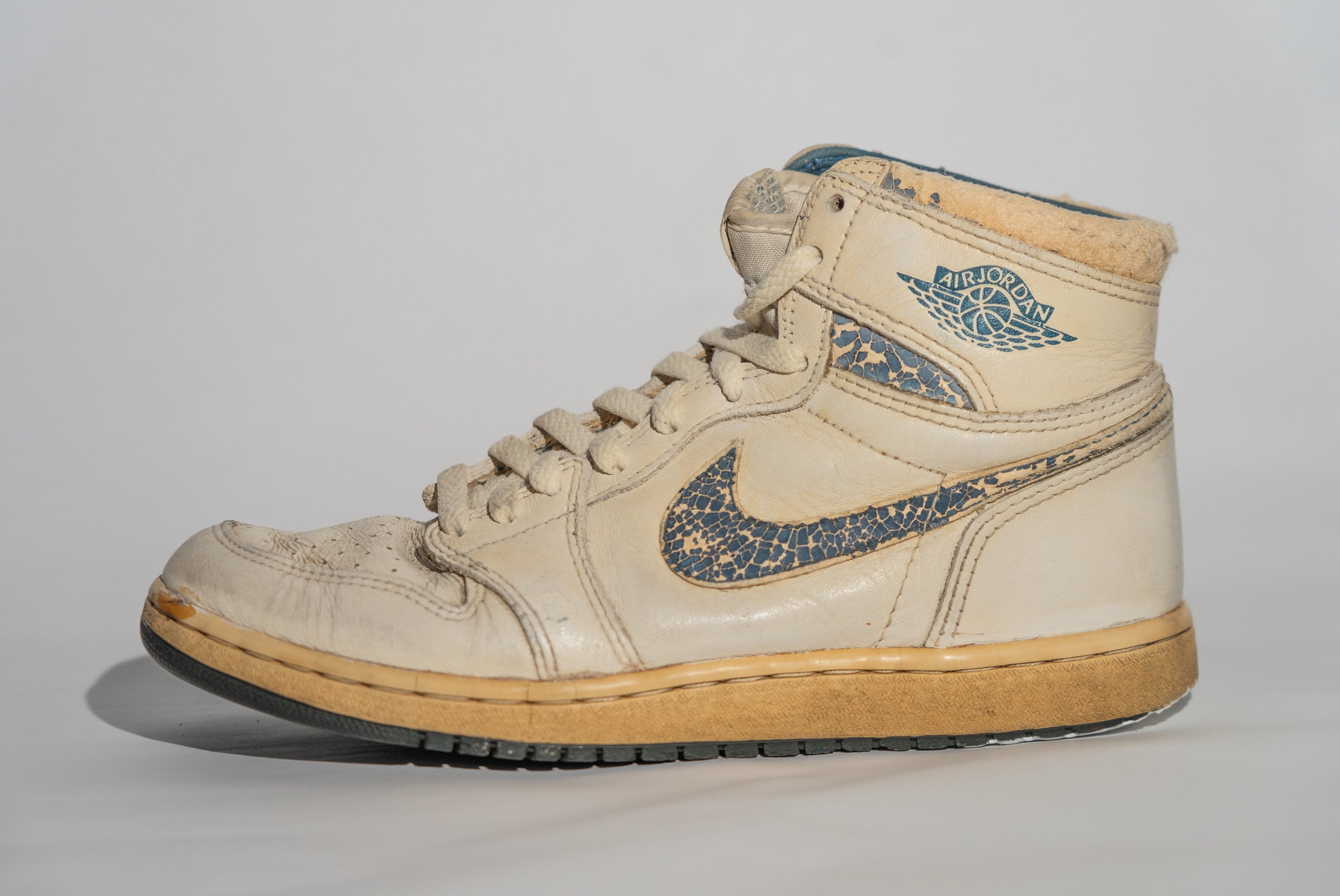 1985年に誕生したAir Jordan 1はバスケットボール史上最高のプレーヤー"Michael Jordan"のファースト シグネチャーモデルとして誕生。当時のNBAは規定が厳しく、試合でAir Jordan 1を履くたびに罰金をNIKEが支払い続けた逸話が存在します。同氏のシグネチャーモデルの中でもAir Jordan 1は、屈指の人気を誇る"キング・オブ・スニーカー"と呼ばれています。彼が1985年に実際に着用したAir Jordan 1が、Sotheby’sに2020年に出品され、56万ドル(約5,800万円)で落札されたことも大きな話題となりました。本商品は、1985年のオリジナルリリース時に発売された全16色のうち、唯一のメタリックカラーとなります。