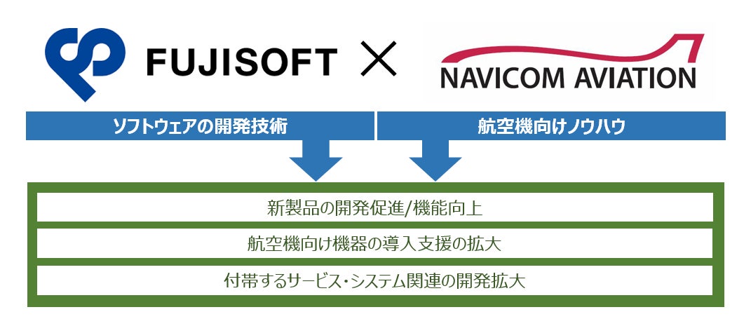 本協業により、ナビコムアビエーションの航空機向け事業における技術・ノウハウと、富士ソフトのICT分野における技術・開発力を融合させることで、航空機向け領域に新たなビジネスを創造し、事業の強化・拡大を目指します。航空機運航において安全領域と効率性向上のテクノロジー発展に貢献する新たな付加価値を提供してまいります。