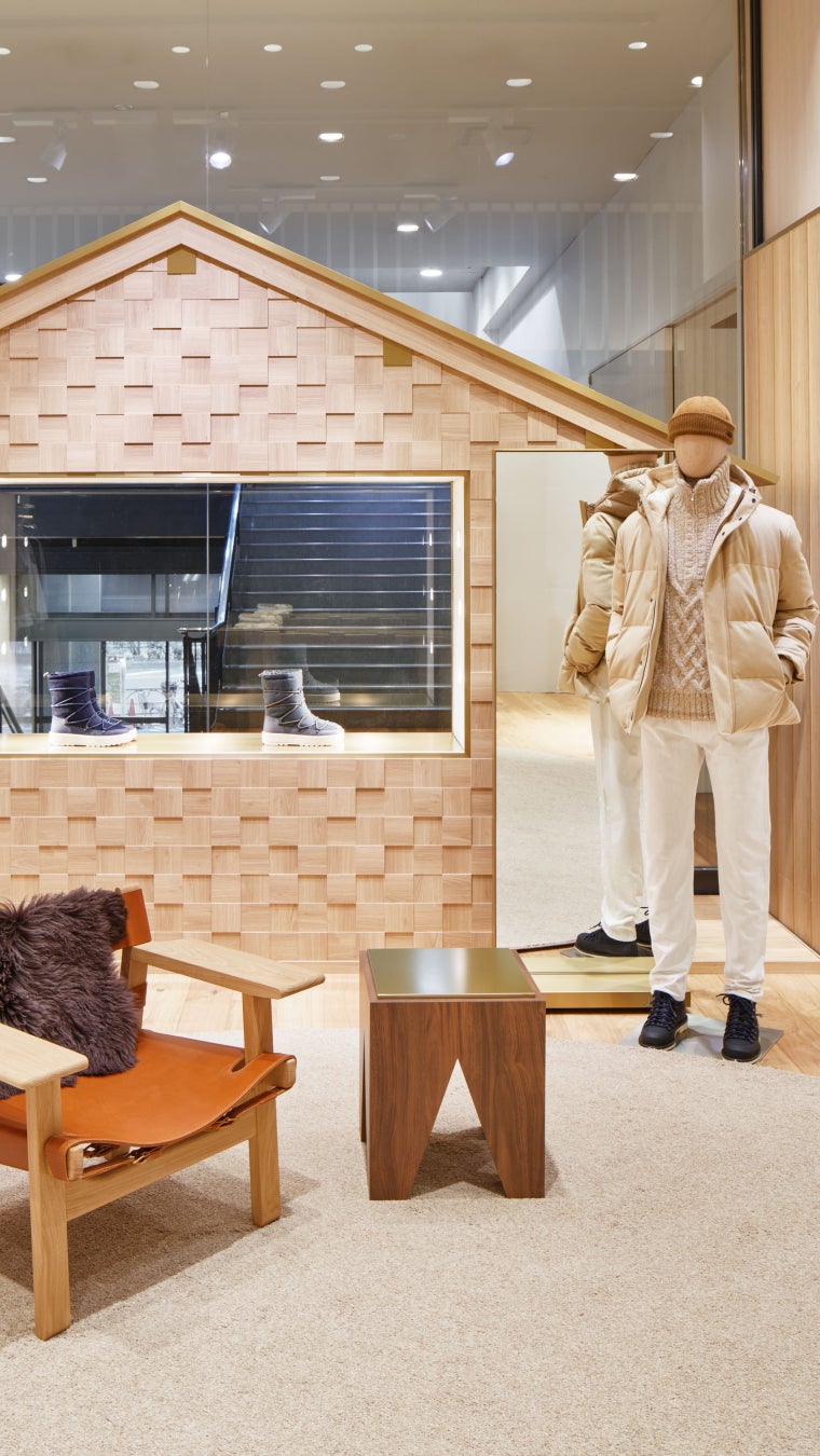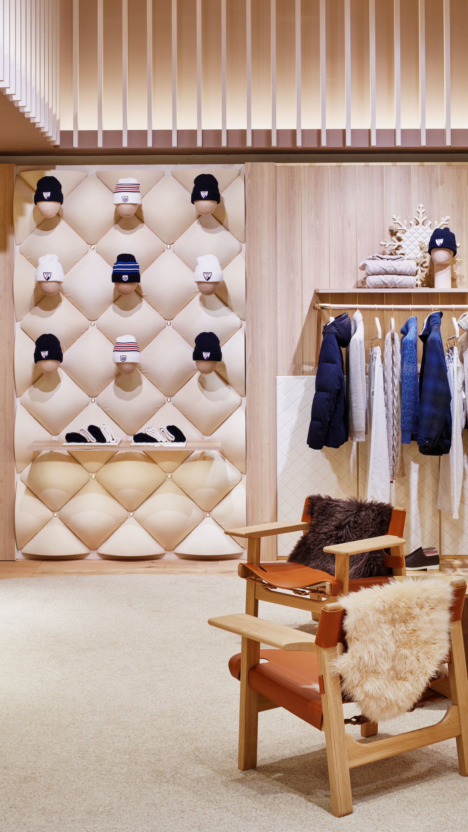 ポップアップストアでは、メンズ、レディスのホリデーコレクションをウェアからアクセサリーまでフルラインナップでご紹介します。カシミヤとシアリングを中心に、ホワイトデニムのパンツをシンボルにしつつ、ソフトで包み込むような質感、自然な色合い、雪にぴったりなラグジュアリーな装いをご提案します。