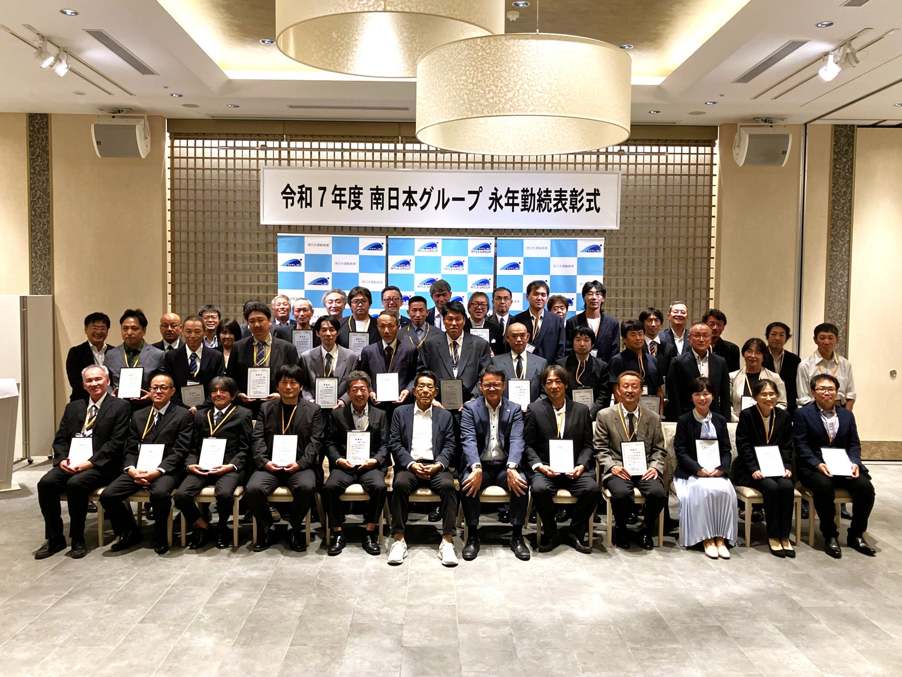 チルド・フローズン食品輸送の南日本運輸倉庫株式会社(本社:東京都中野区、代表取締役社長:大園 圭一郎 以下、当社)は、今年で4回目となる令和7年度南日本グループ永年勤続表彰式を10月8日、20日の2日間に分けて実施したことを、お知らせいたします。