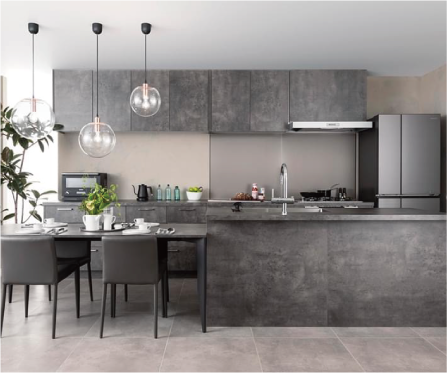 豊富な収納量と使い勝手とデザイン性を兼ね備えたキッチンハウスのグラフテクト。
