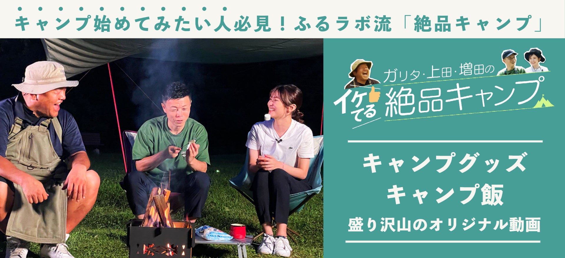 「ふるラボ」の返礼品の魅力がたくさん詰まった「【ふるラボ2周年企画】ガリタ・上田・増田のイケてる絶品キャンプ」をぜひご覧ください!動画は「ふるラボ」内キャンプ特集ページにて公開中!