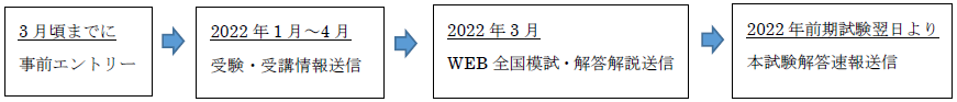 WEB全国模試・本試験解答速報、受験・受講情報などは、2022年3月26日(予定)より、 順次メールで送信します。