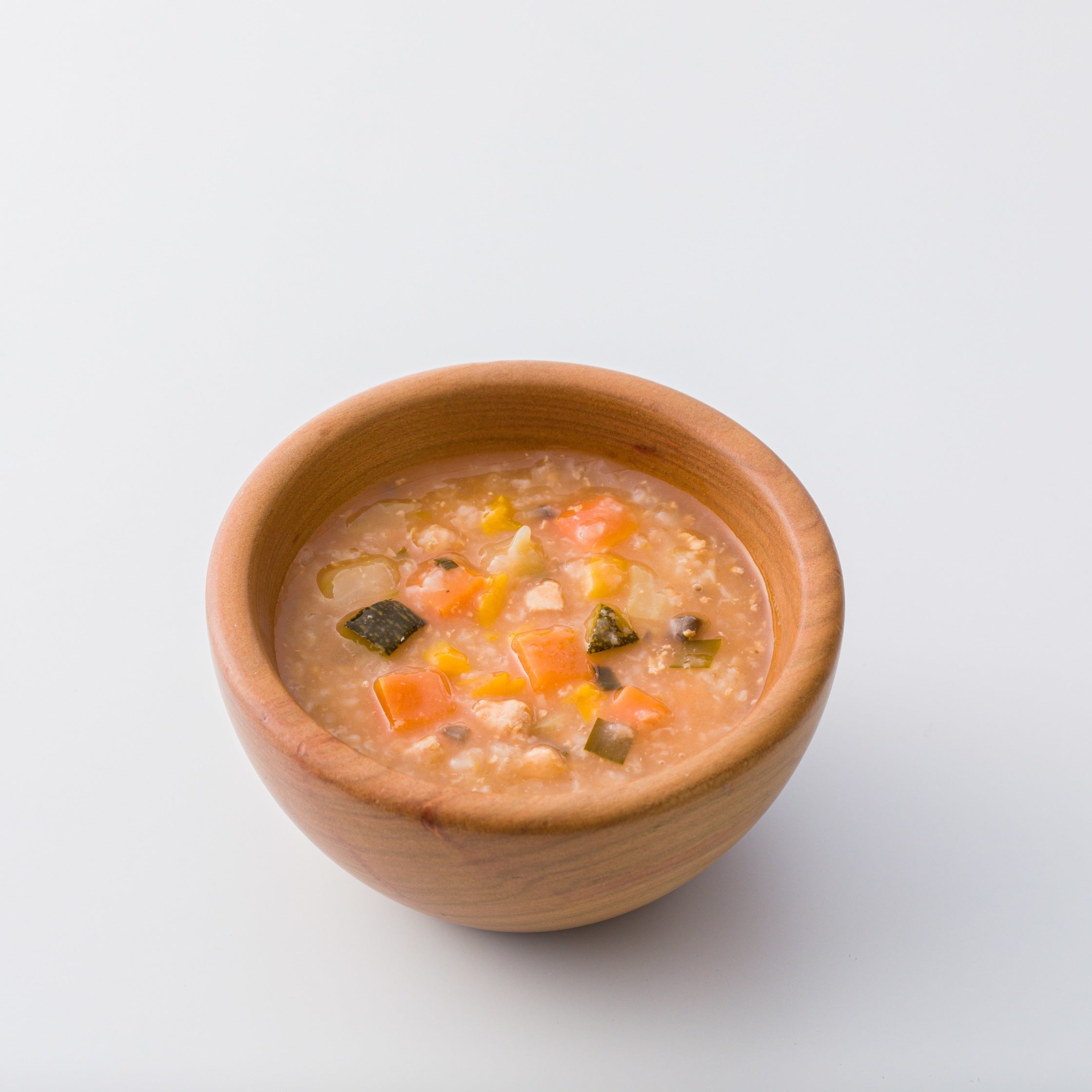 イタリア産トマトにキャベツの旨味を合わせたピューレに玉葱、ズッキーニ、人参などたくさんの野菜を合わせました。