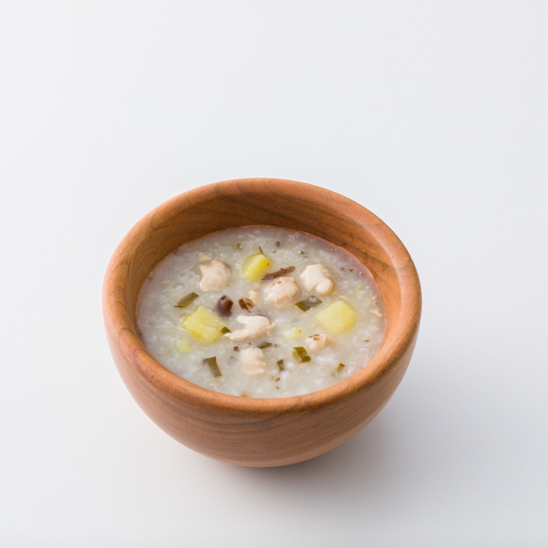 料理は目、鼻、口で感じることが大事です。それは離乳食も同じ。お米はあえてつぶさず、お米の食感をそのままに。そうすることで見た目も舌ざわりも楽しめます。