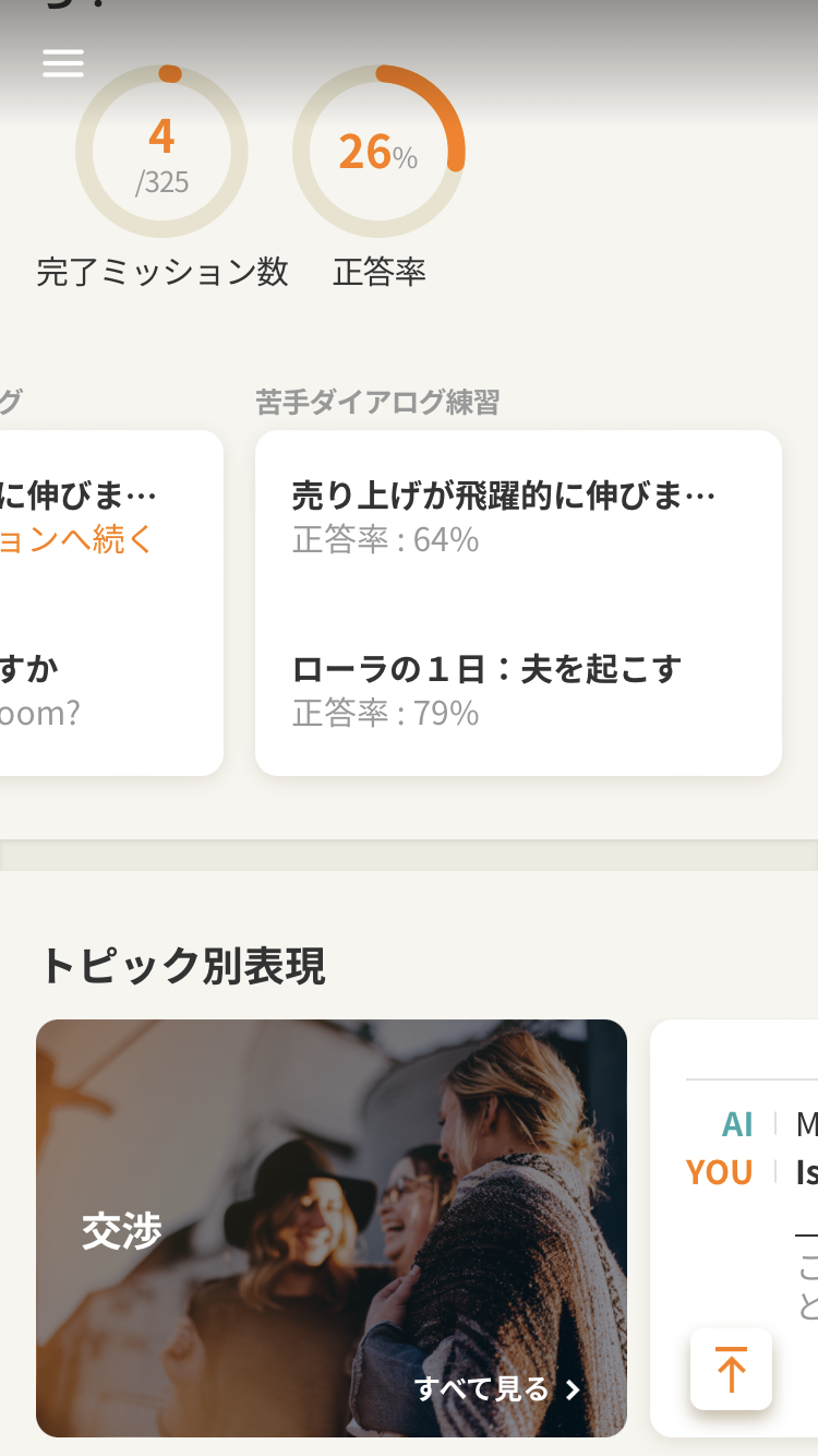 リアルな会話に近い感覚を味わえるAI対話型英会話学習アプリ~「日常英会話」「ビジネス英会話」の2テーマで、朝起きてから寝るまでの1日分の会話等を疑似体験~