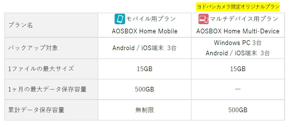 (製品ラインナップにヨドバシカメラ限定オリジナルプランを含む)