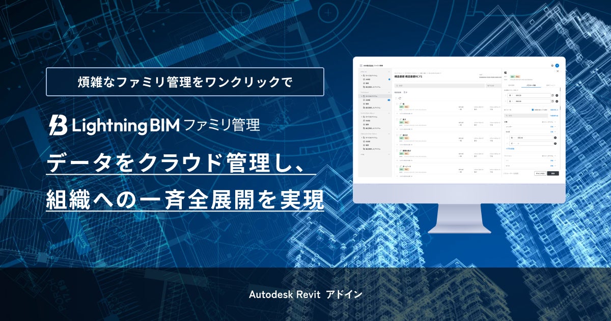 建設DXを推進する株式会社Arent(東京都中央区、代表取締役社長:鴨林広軌、証券コード:5254 東証グロース、以下「当社」)は、このたびAutodesk Revit(オートデスク社のBIMソフトウェア、以下Revit)のファミリデータをクラウドで管理する新製品『Lightning BIM ファミリ管理』の販売を開始いたしますのでお知らせいたします。